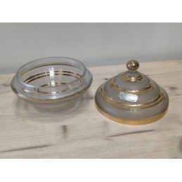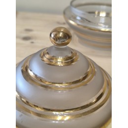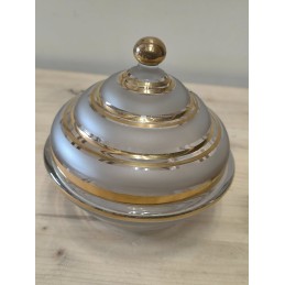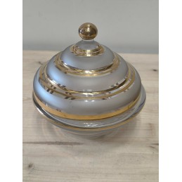 Attention, un petit coup (voir photos) et petite perte de dorure au niveau de la boule sur le couvercle