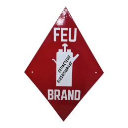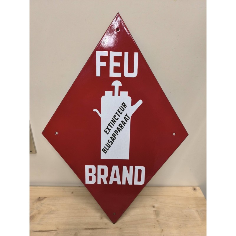 Ancienne plaque émaillée "Feu / Brand" de forme losange