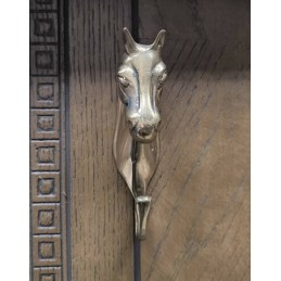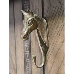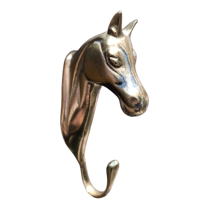 Ancien porte manteaux mural, patère en laiton à tête de cheval