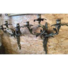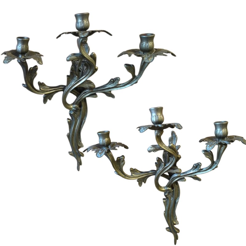 Paire d'anciennes appliques murales style Louis XV rocailles