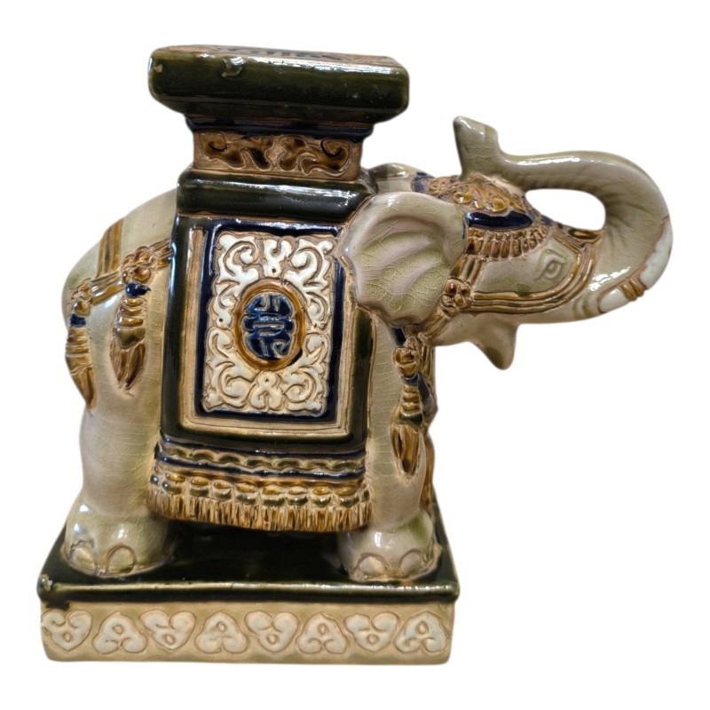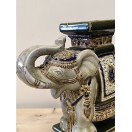 Eléphant / porte plante en céramique craquelé vintage