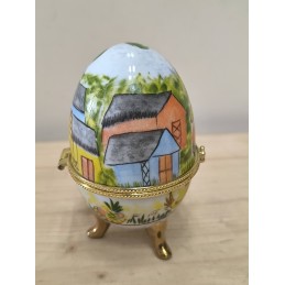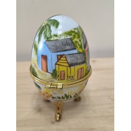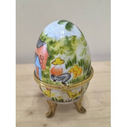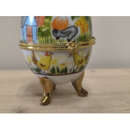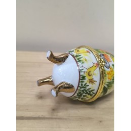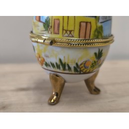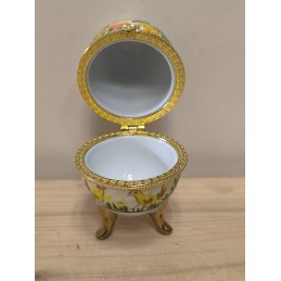Petite boite œuf en porcelaine avec armature dorée