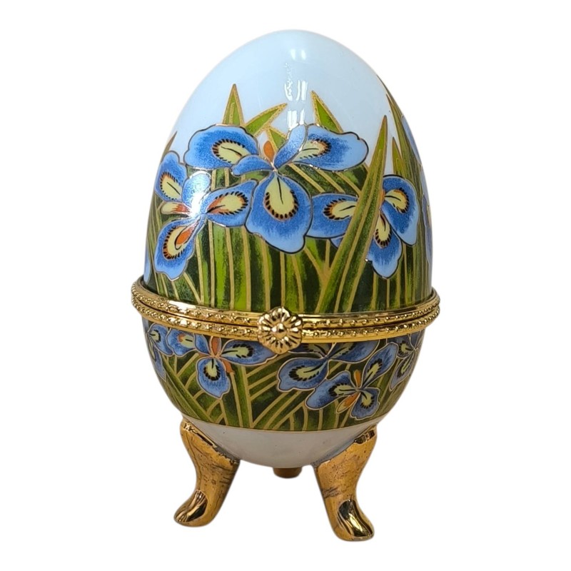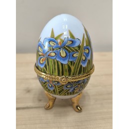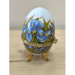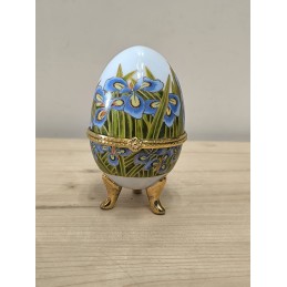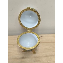 Petite boite œuf en porcelaine avec armature dorée