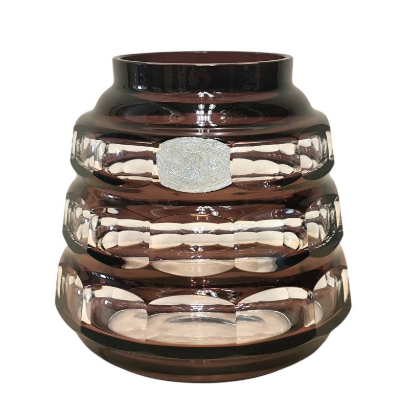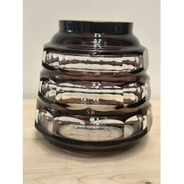 Vase Val Saint Lambert en cristal doublé prune - blanc