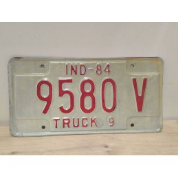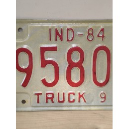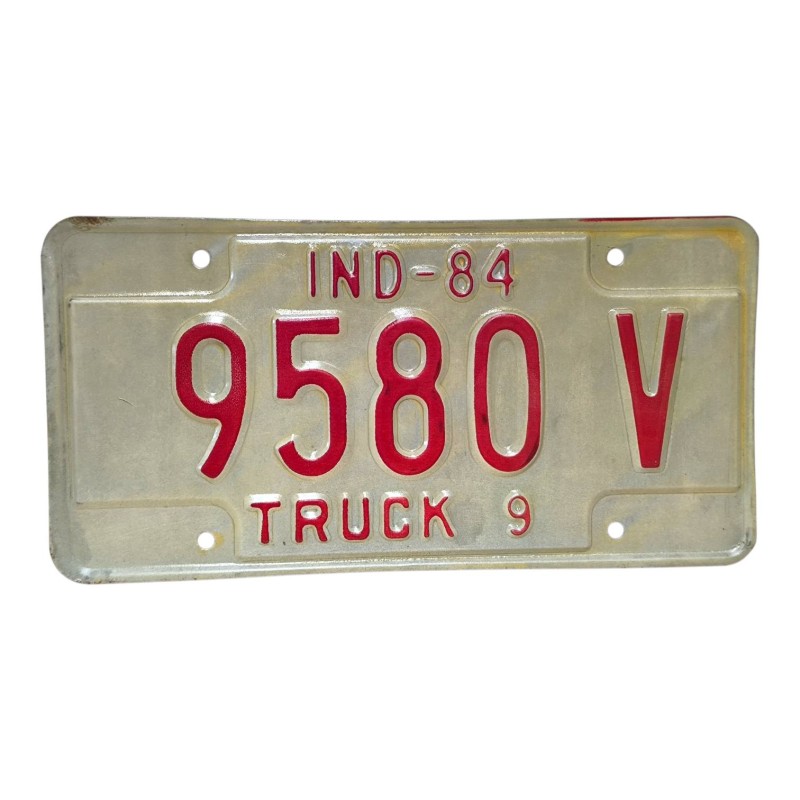 Couleurs: Blanc et rouge (Le design épuré avec l'abréviation "IND-84" en haut montre qu'il s'agit d'une plaque d'époque, car l'État a ensuite évolué vers des designs plus graphiques et colorés.)