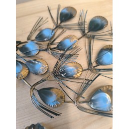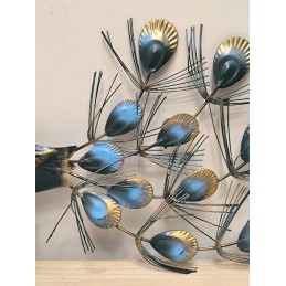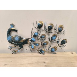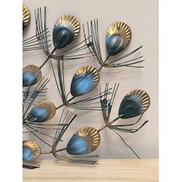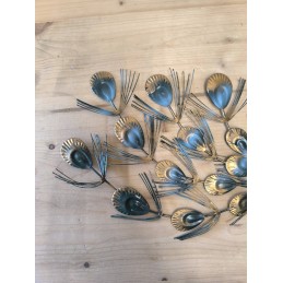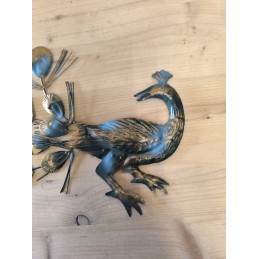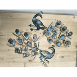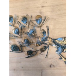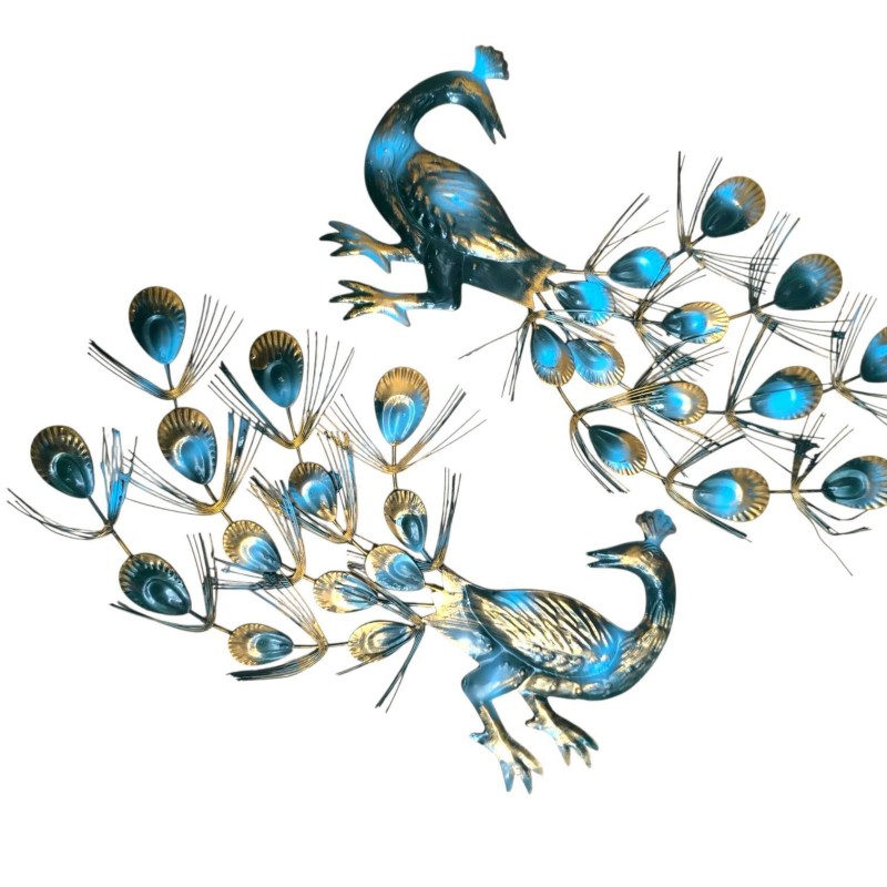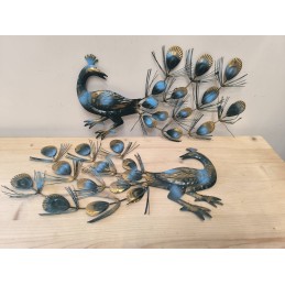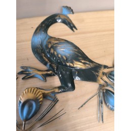 Ensemble de décorations murales vintage représente deux paons en métal. +- 1960 (MCM)