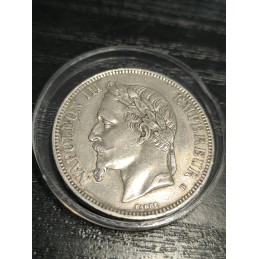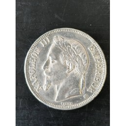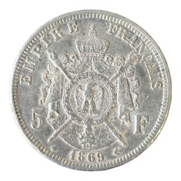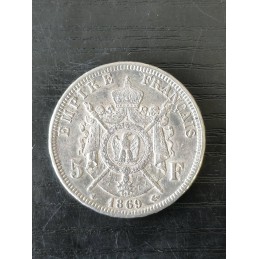 Pièce de 5 Francs Napoléon III, type "Tête Laurée", frappée en 1869 à l'atelier de Strasbourg (lettres BB).